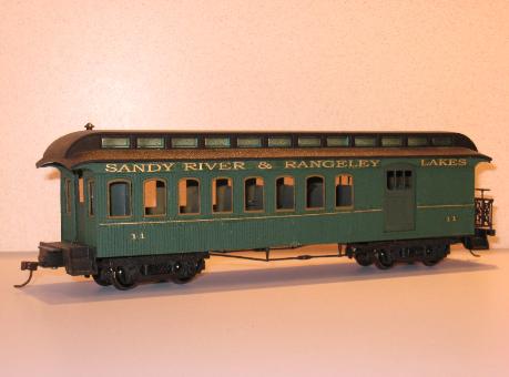 Bachmann ON30 coaches. The kits include unpainted wooden side and end